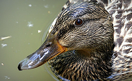 綠翅鴨雄鳥繁殖羽頭和頸深栗色,自眼周往后有一寬闊的具有光澤的綠色帶斑,經(jīng)耳區(qū)向下與另一側(cè)的相連于后頸基部。 |